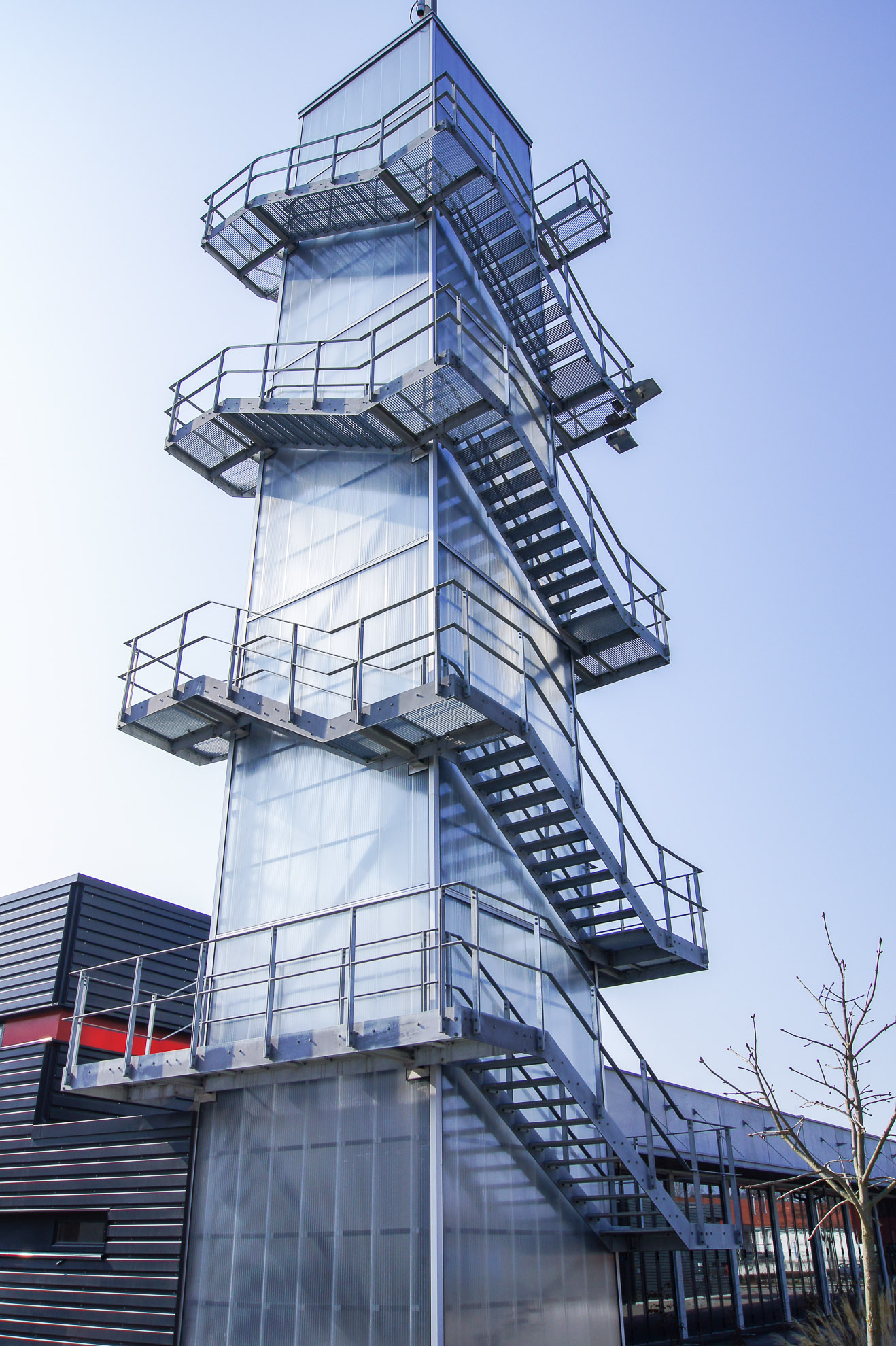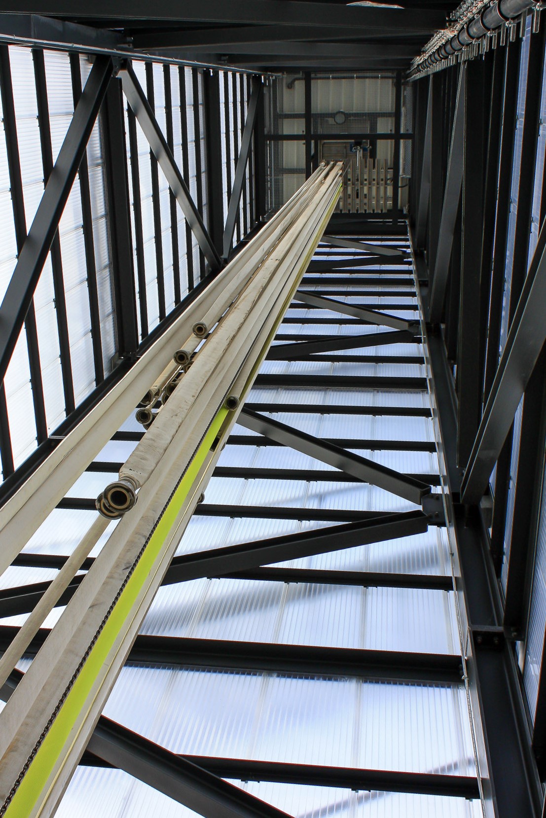 Mittels zwei Autokranen wurde der vormontierte Turm beim feierlichen Festakt mit Oberbürgermeister Michael Lang aufgerichtet. So schmückte an diesem Tag der Richtbaum den Stahlbau und die seltene Gelegenheit als Schlosser den Richtspruch zu sagen ließen wir uns natürlich nicht nehmen.