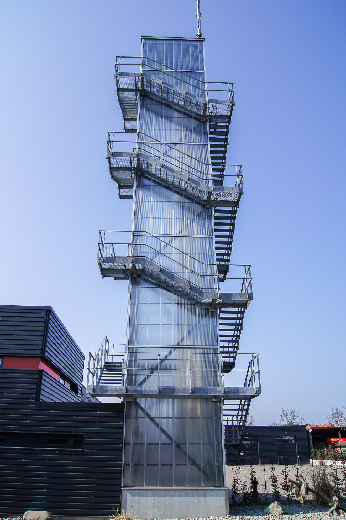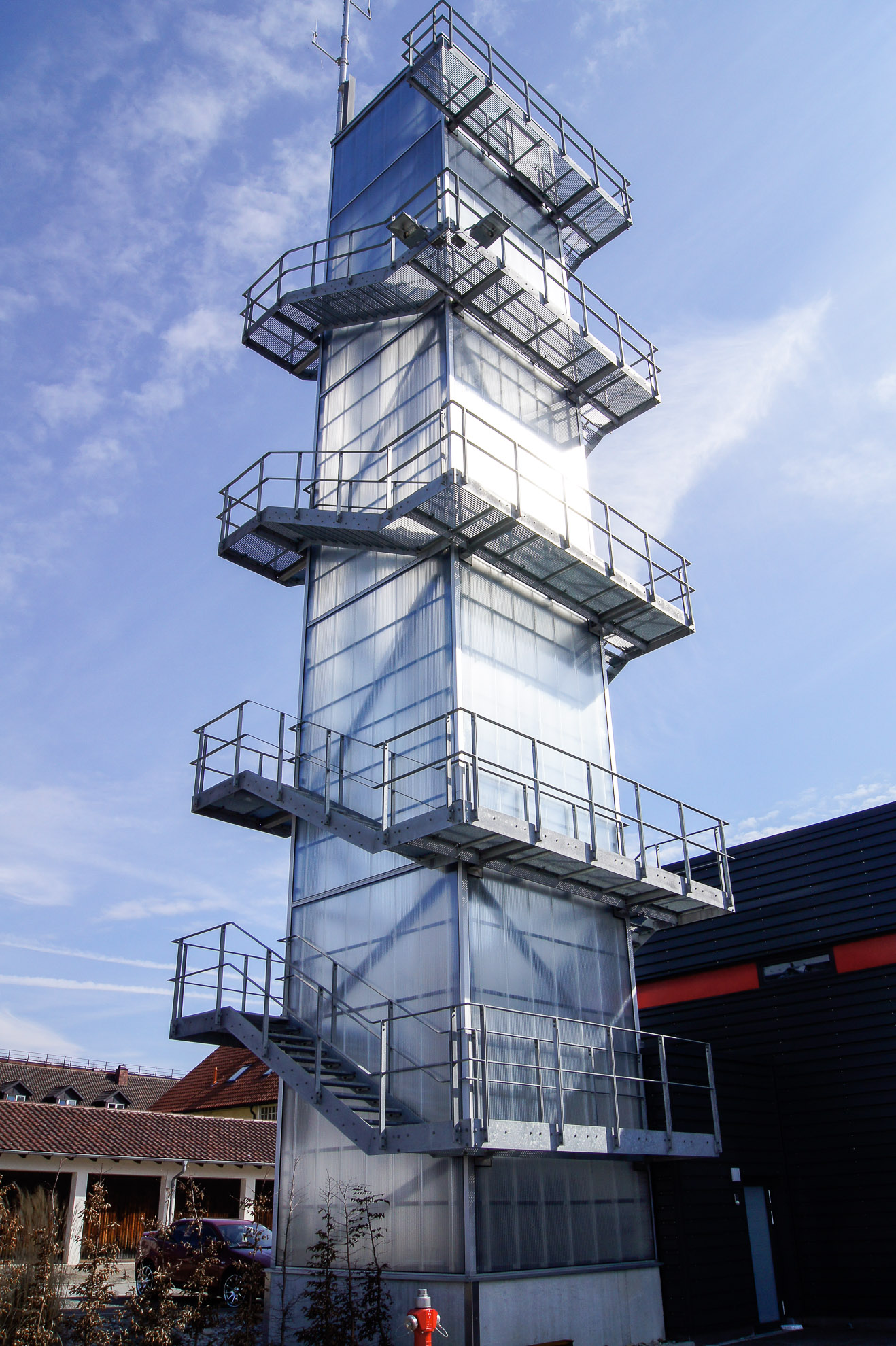 Der erforderliche Neubau eines Feuerwehrgerätehaus am Südring in Wangen wurde im Jahr 2008 begonnen. Mit modernen Büro- und Mannschaftsräumen sowie der angeschlossenen Fahrzeughalle präsentiert sich die Wangener Feuerwehr wieder zeitgemäß. Ist der stählerne Schlauchturm tagsüber fast transparent, so leuchtet er beim Feuerwehreinsatz entsprechend rot. Zudem dient seine umlaufende Treppenkonstruktion auch den Rettungsübungen der Mannschaft