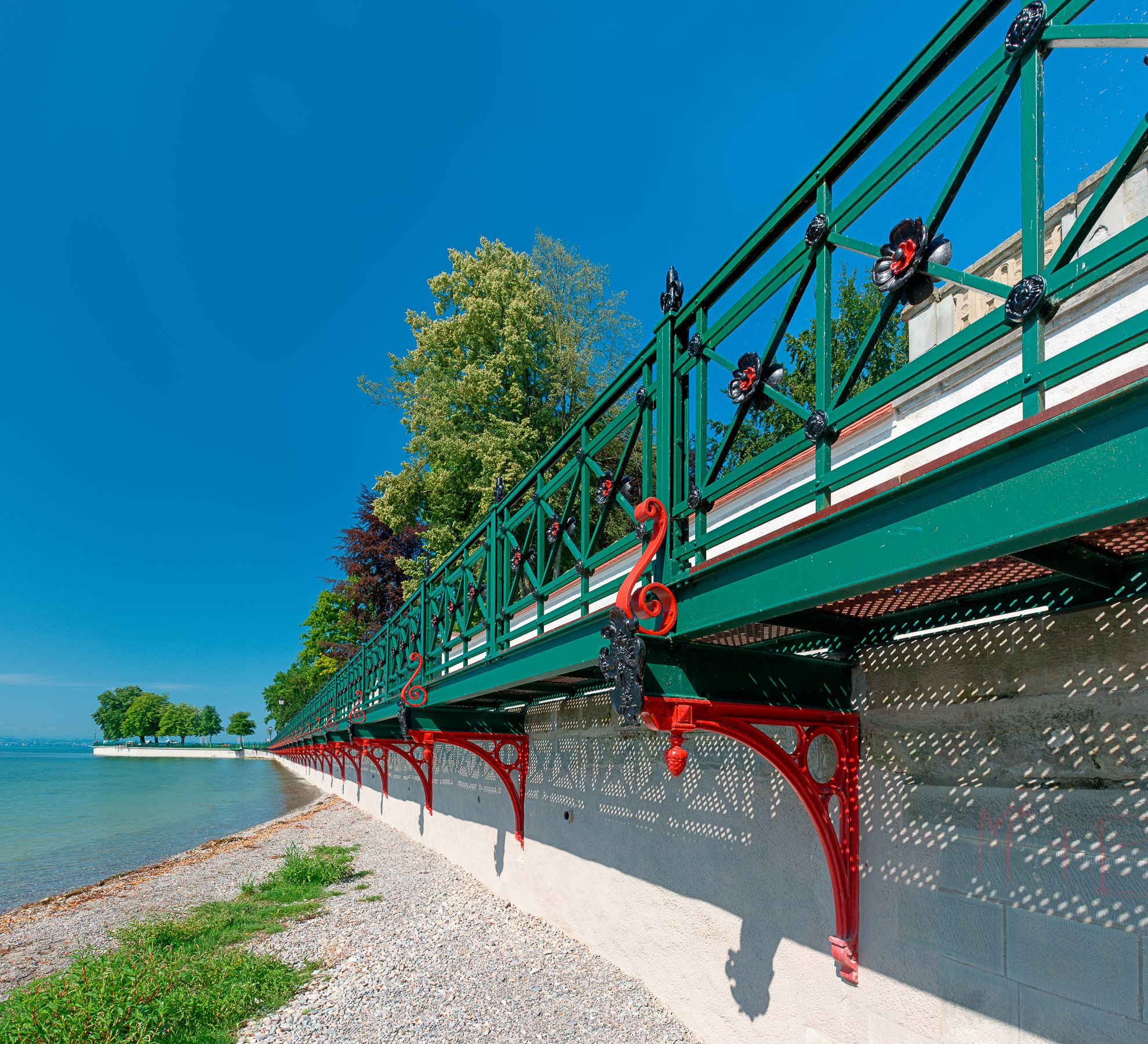 Der in den 1870er Jahren erbaute Schlosshafensteg lag viele Jahre brach und konnte nicht genutzt werden. Die Stadt Friedrichshafen und das Landesamt für Denkmalpflege entschlossen sich, die teils marode Konstruktion vor dem Zerfall zur Sanierung auszuschreiben.