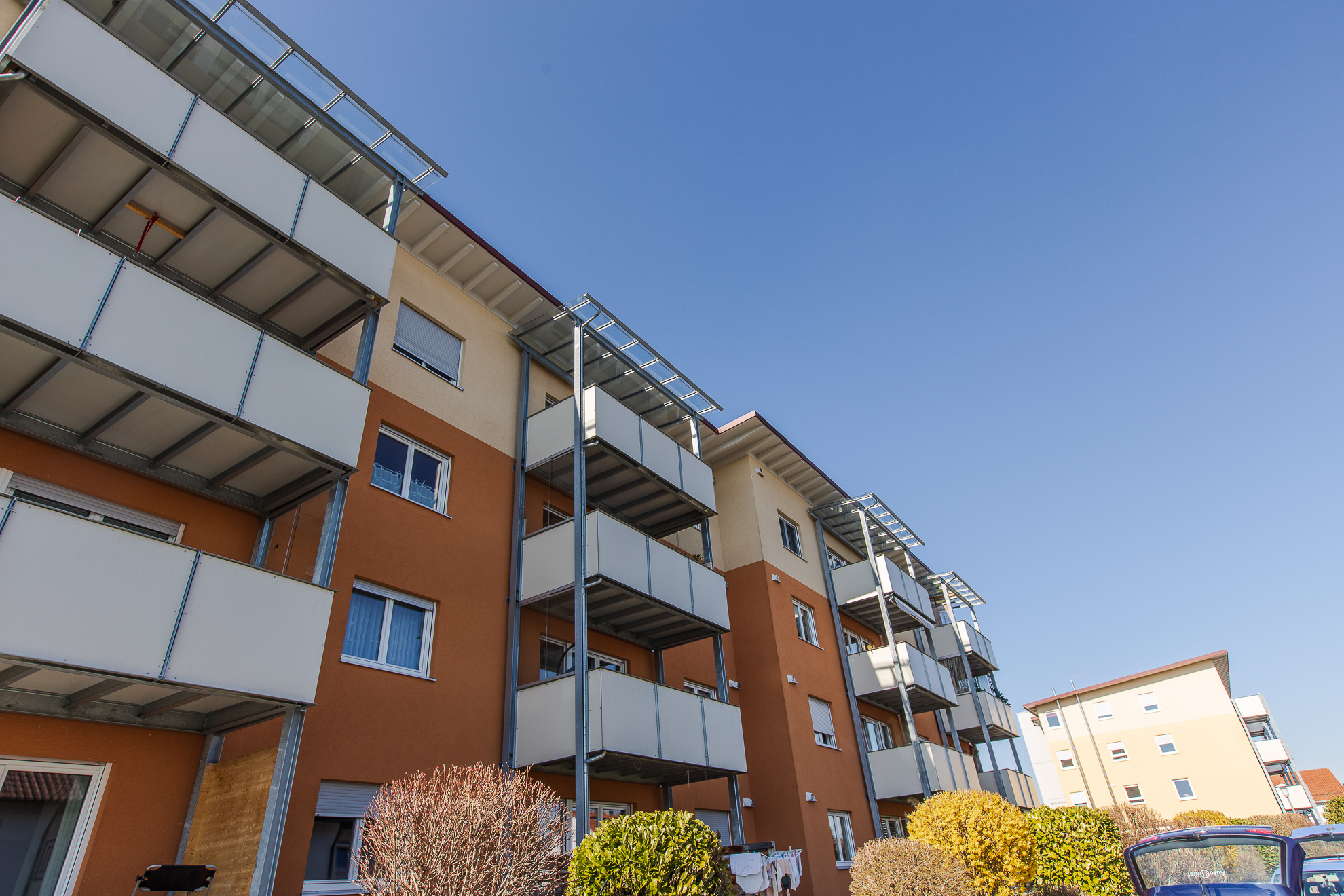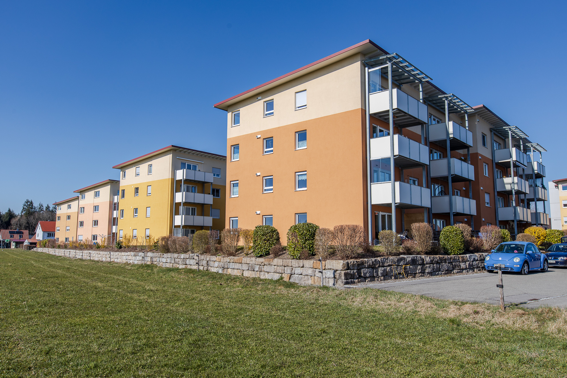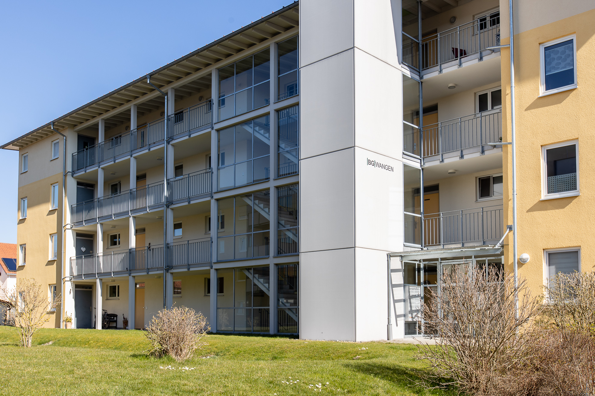 Solidarprinzip, günstige Mieten und lebenslanges Wohnrecht - die Baugenossenschaft Wangen entscheidet sich nach einem Abriss der ursprünglichen Wohnbebauung in der Banatstraße an gleicher Stelle über 130 moderne und helle Wohnungen in sämtlichen Größen zu errichten. In mehreren Bauabschnitten werden die einzelnen Häuser fertiggestellt. Scheinen sie auf den ersten Blick alle gleich, so wurden sie doch an den jeweiligen Bedarf am Markt angepasst und keines gleicht dem anderen.